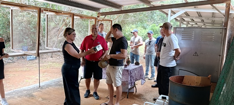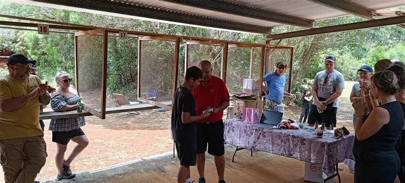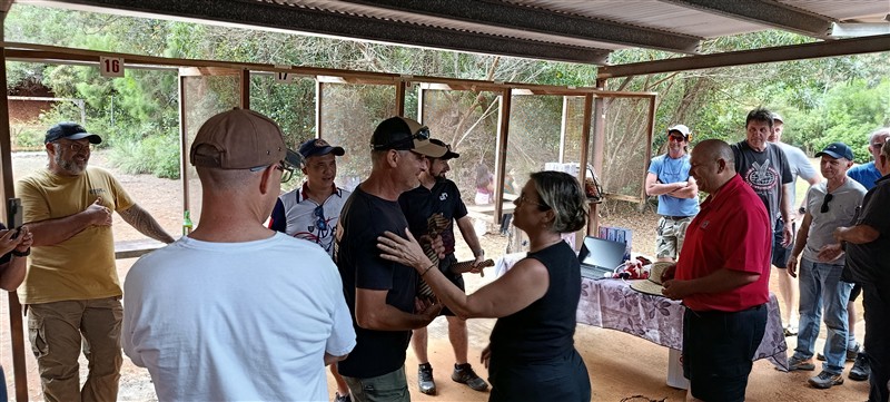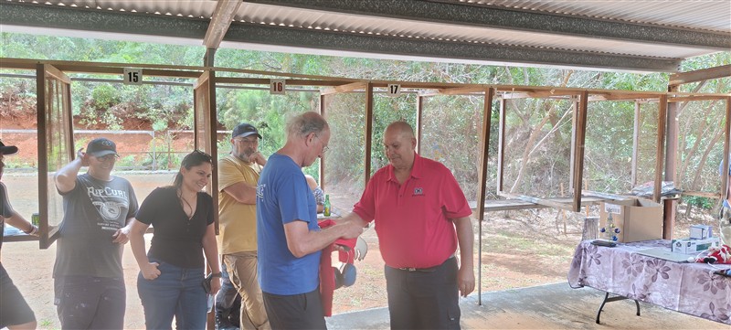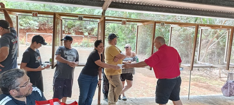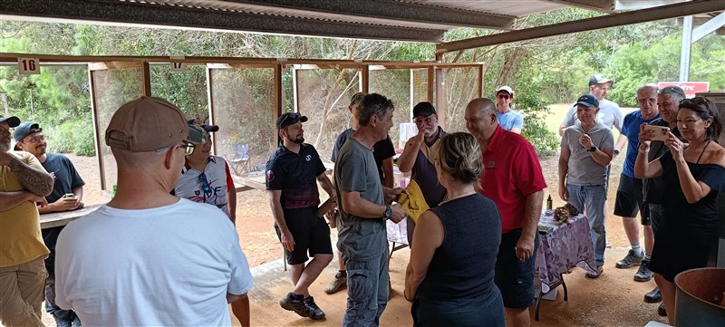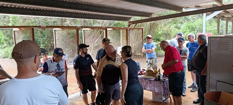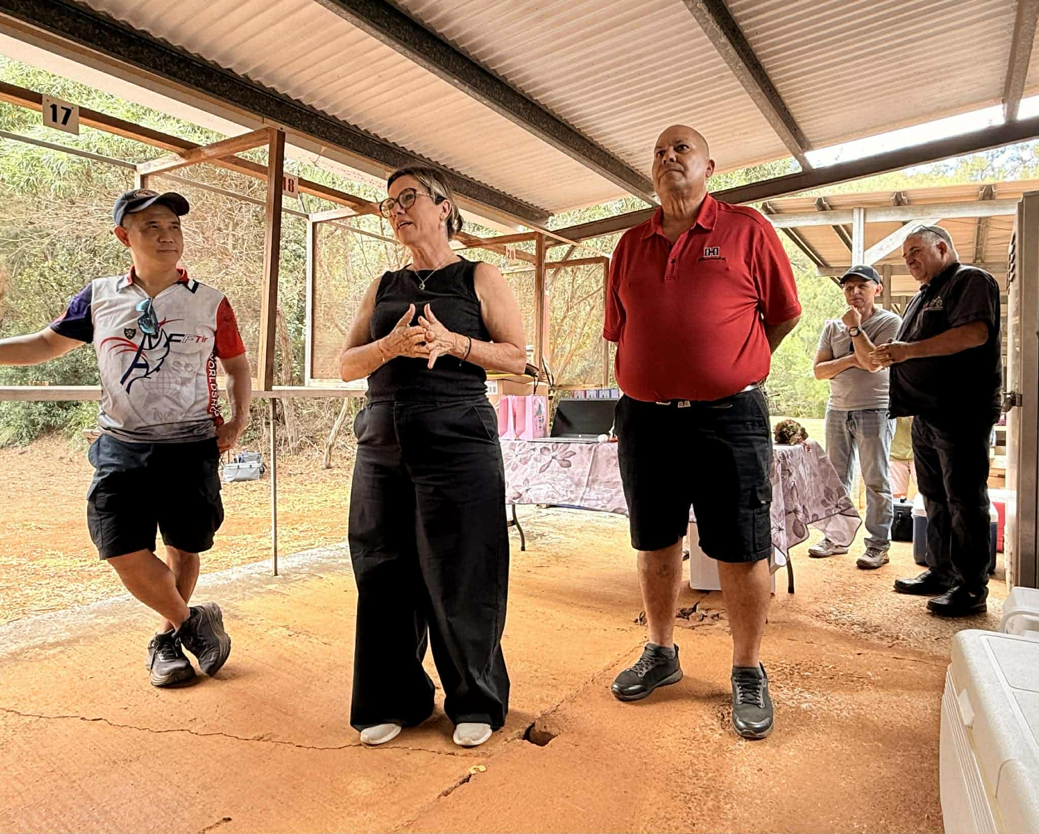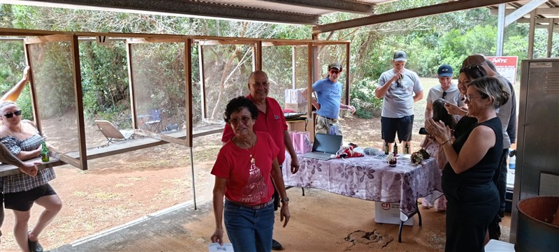 Tout le monde (tireurs, adhérents et sympathisants) s'est retrouvé à 11h30 pour la remise des prix. Mme Cynthia JAN, candidate à la mairie de Dumbéa pour les élections municipales 2026, nous a fait l'honneur de sa présence et à procéder conjointement avec notre président à la remise des prix et lots pour chaque discipline.